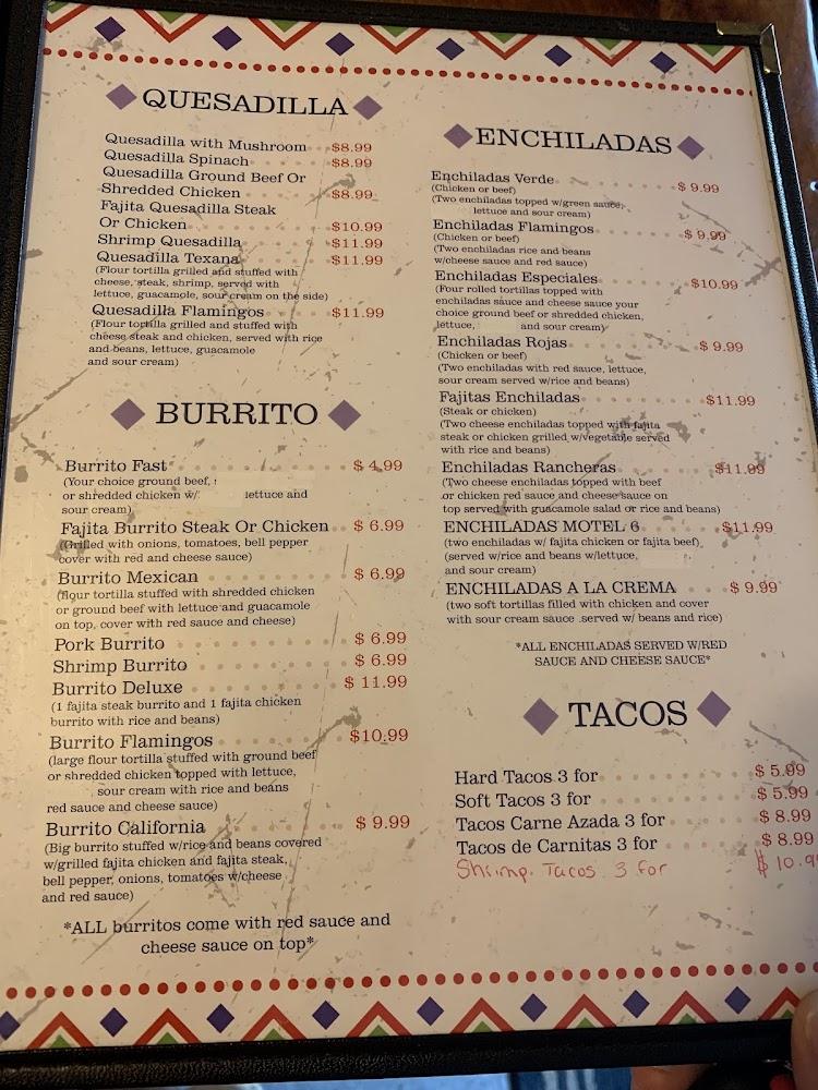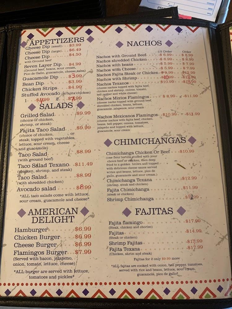El Flamingo offers a broad menu featuring over sixty dishes. Highlights include traditional Mexican specialties like carne asada and enchiladas. Appetizers like cheesy nachos and crispy taquitos set the stage for a great meal.